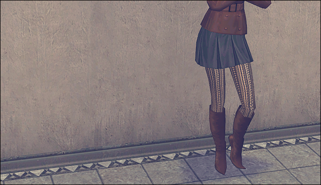 therasmuse over at GoS requested this and I decided to try my hand at it. So they asked for Dori’s Autumn Days Outfit recoloured with Aelia’s Eco Naturals and patterned tights. I think they turned out pretty good and I’m rather pleased with them myself :3