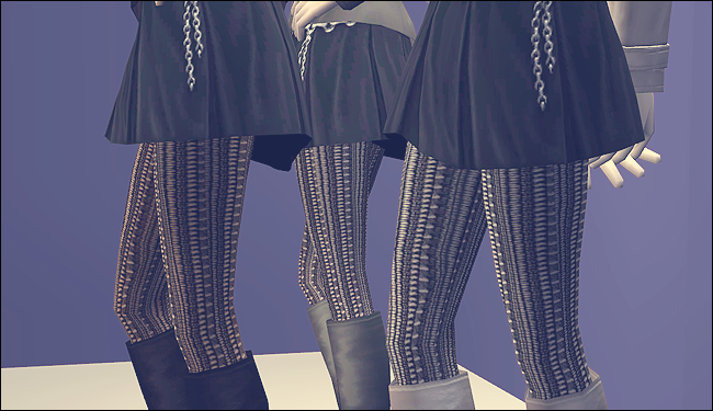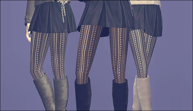 There’s 36 files in total. 18 with solid tights and 18 with patterned tights. All are included in the download with folders seperating them – Shadows are solid tights and Echoes are the patterned tights. They’re all clearly labelled so you can easily take out what you don’t want.